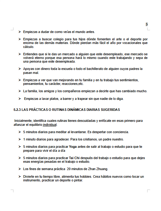 5.2.3 LAS PRÁCTICAS O RUTINAS DINÁMICAS DIARIAS SUGERIDAS