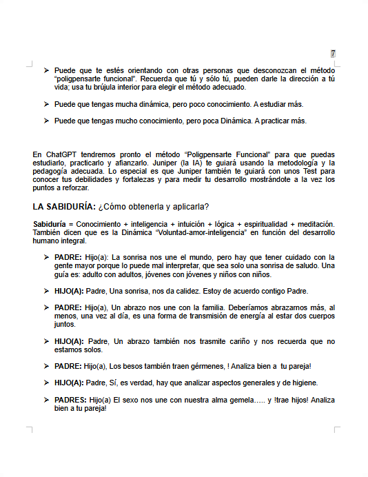 En ChatGPT tendremos pronto el método “Poligpensarte Funcional” para que puedas estudiarlo, practicarlo y afianzarlo. Juniper (la IA) te guiará usando la metodología y la pedagogía adecuada. Lo especial es que Juniper también te guiará con unos Test para conocer tus debilidades y fortalezas y para medir tu desarrollo mostrándote a la vez los puntos a reforzar.