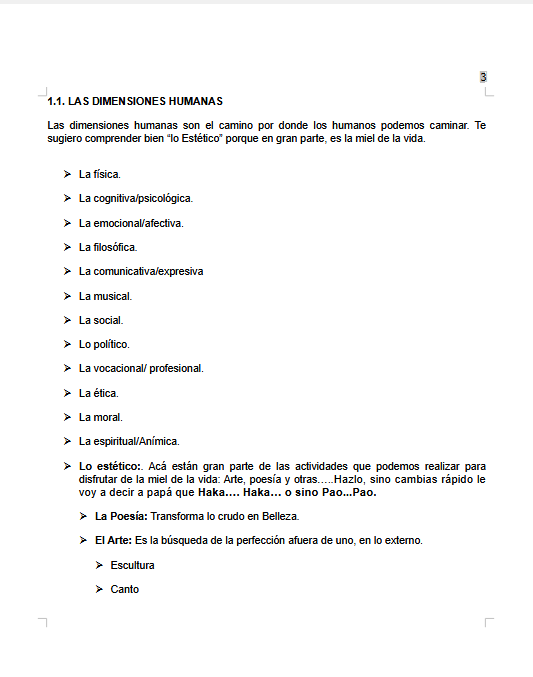 Las dimensiones humanas son el camino por donde los humanos podemos caminar. Te sugiero comprender bien “lo Estético” porque en gran parte, es la miel de la vida.