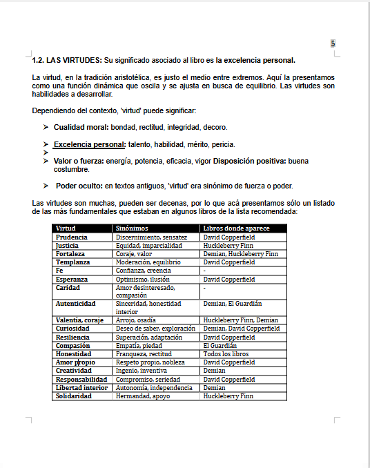 1.2. LAS VIRTUDES: Su significado asociado al libro es la excelencia personal.