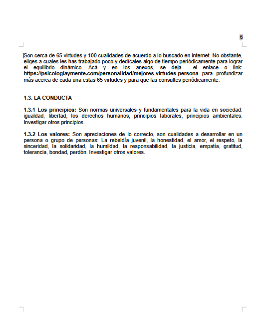 Son cerca de 65 virtudes y 100 cualidades de acuerdo a lo buscado en internet. No obstante, eliges a cuales les has trabajado poco y dedícales algo de tiempo periódicamente para lograr el equilibrio dinámico. Acá y en los anexos, se deja el enlace o link: https://psicologíaymente.com/personalidad/mejores-virtudes-persona para profundizar más acerca de cada una estas 65 virtudes y para que las consultes periódicamente.