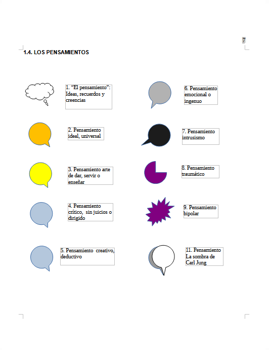1.4. LOS PENSAMIENTOS: Ver las imágenes abajo, en las fotos numeradas, en la página 7.
