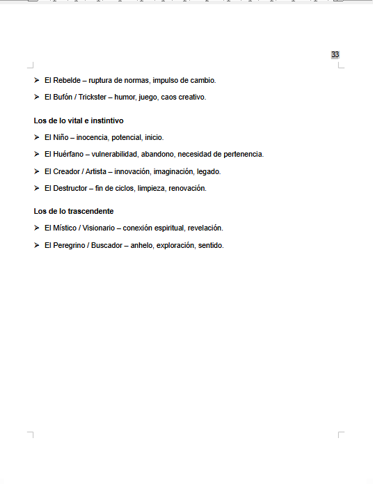 - El Sabio / Anciano – conocimiento, consejo, mirada amplia.
