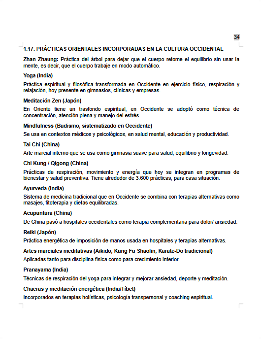 1.17. PRÁCTICAS ORIENTALES INCORPORADAS EN LA CULTURA OCCIDENTAL